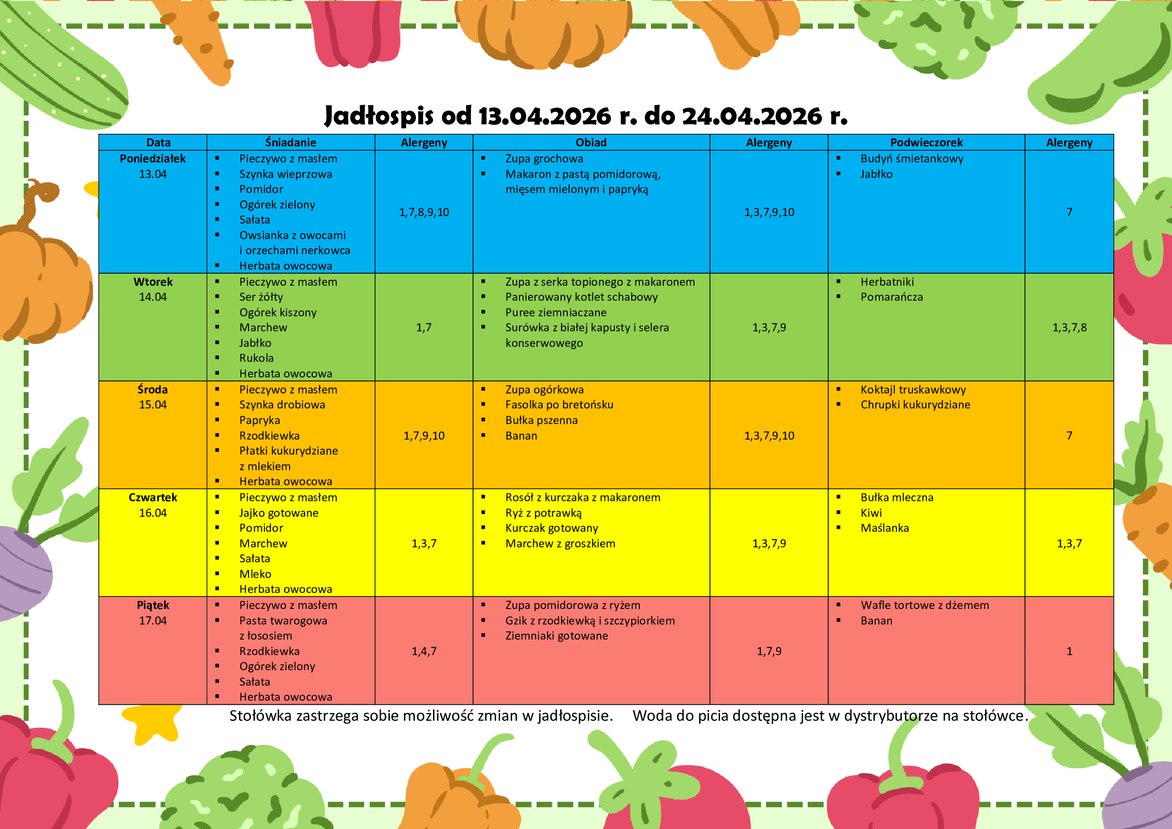 W związku z powyższym na stronie SP Pępowo oraz na tablicy ogłoszeń w stołówce szkolnej wywieszona jest informacja o alergenach występujących w produktach spożywczych, a przy każdym jadłospisie będzie można znaleźć numery alergenów występujących w posiłkach. Są to alergeny, które występują danego dnia w posiłkach. Odpowiadają one numeracji poniższego rozporządzenia.